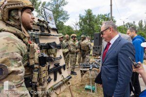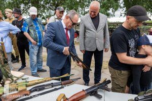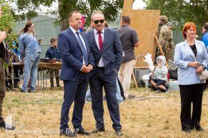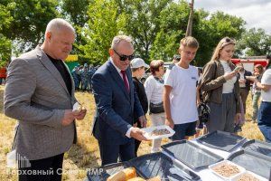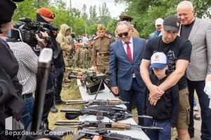 Недалеко от места импровизированного боя были развернуты выставки оружия, современных и ретроавтомобилей, военной техники, полевая кухня, пневматический тир. Осмотрел выставочные павильоны под открытым небом и Председатель Верховного Совета ПМР Александр Коршунов.