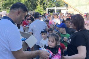 Яков Галак поздравил детей с началом лета, пожелав им радости, здоровья, добра, мира, хороших каникул, вручил мороженое ребятам и их родителям.