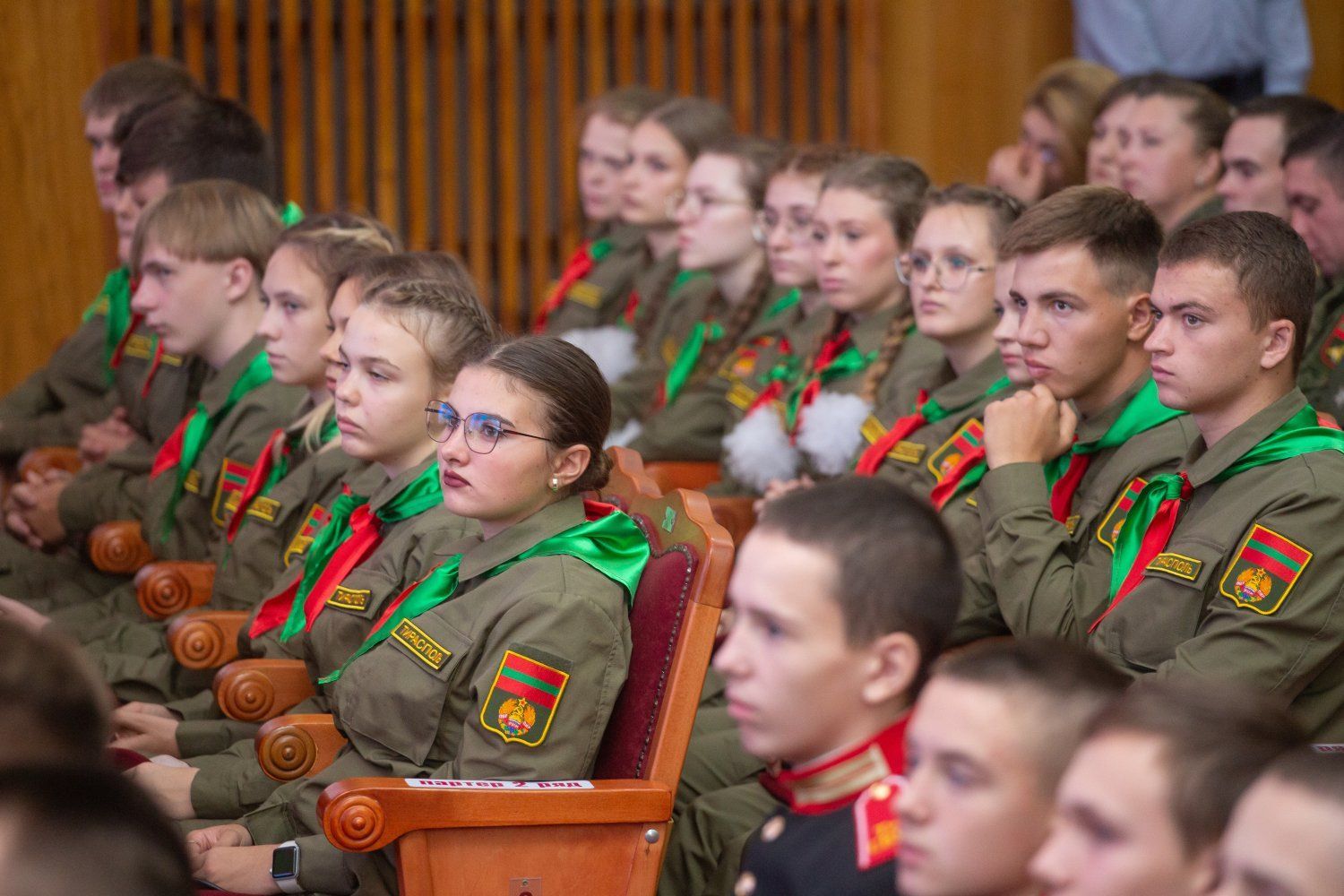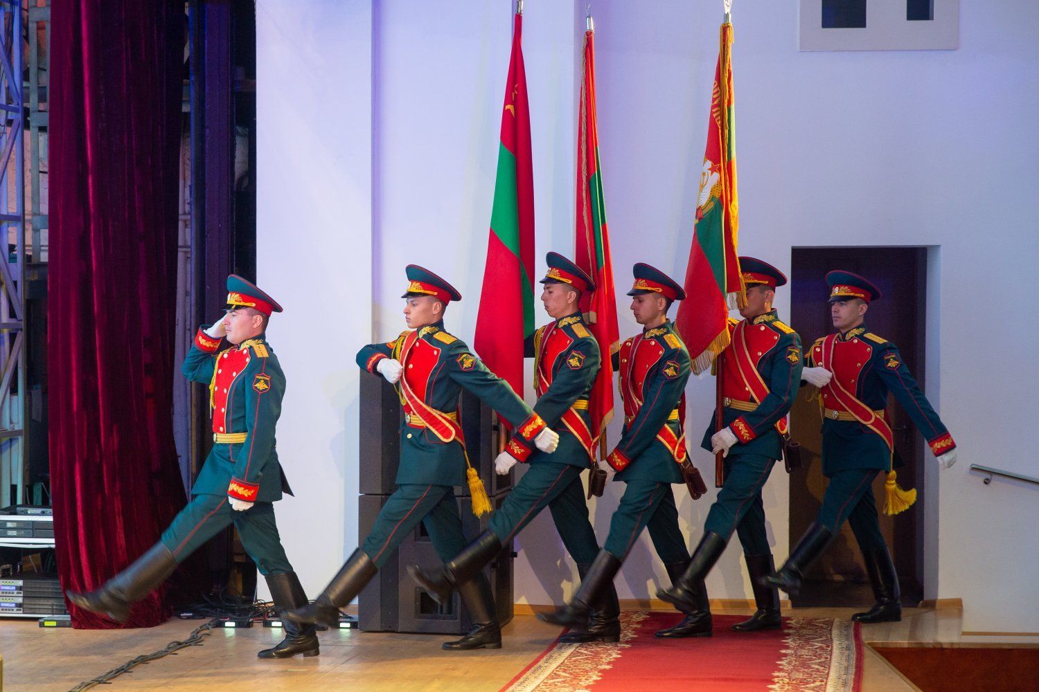 В большом зале Дворца Республики состоялось торжественное собрание по случаю 33-летия Вооруженных сил ПМР. В нем принял участие Главнокомандующий Вадим Красносельский, Председатель Верховного Совета ПМР Александр Коршунов и Первый Президент ПМР Игорь Смирнов, а также вице-спикер парламента, председатель Комитета Верховного Совета по законодательству, правоохранительным органам, обороне и безопасности Галина Антюфеева и председатель Комитета по образованию, общественным объединениям и молодежной политике Игорь Буга.