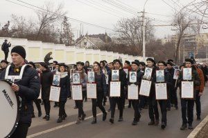 В руках школьников портреты 15 погибших в Афганистане воинов-интернационалистов из Бендер. Война в Афганистане длилась 9 лет и 51 день и забрала жизни почти 15 тысяч советских солдат. Еще 54 тысячи человек были ранены, 298 пропали без вести. Среди тех, кто выжил и приходит каждый год вспомнить погибших однополчан, ветеран-«афганец», гвардии подполковник десантных войск Валерий Кузнецов.