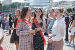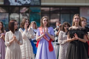 109 лучших выпускников Тирасполя сегодня собрались у центрального фонтана. Золотые и серебряные медали им вручали Председатель Верховного Совета Александр Коршунов, зампред Правительства Сергей Оболоник, министр просвещения Алла Николюк, глава столичной госадминистрации Олег Довгопол и председатель горсовета Альбина Иванова.