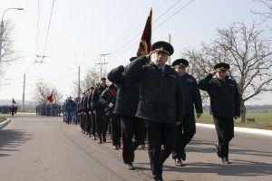 По окончании памятного митинга сотрудники внутренних дел по традиции прошли торжественным маршем.
