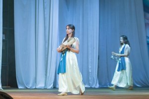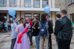 После вручения документов об окончании школы выпускники на сцене исполнили прощальный вальс. Затем вышли на улицу и выпустили в небо белые шары с синей птицей и загадали желания. Синяя птица, как символ путеводной звезды. Она приносит счастье. Для выпускников – это мечта и вера в чудо, символ хорошего и светлого будущего.