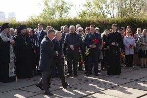 После торжественного открытия, митинга и литургии живые цветы легли к памятнику ликвидаторам аварии на Чернобыльской АЭС.