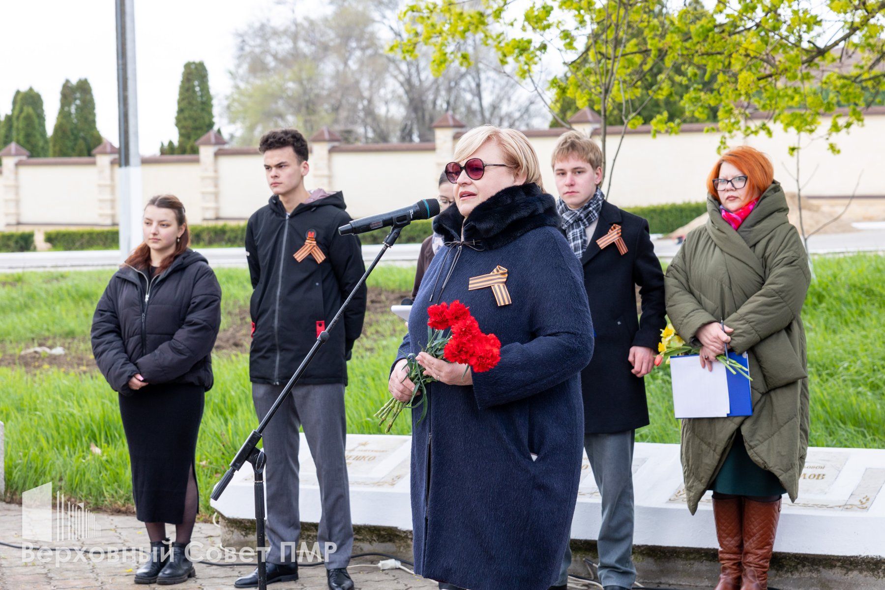 «82 года прошло с тех пор, как был освобожден город Тирасполь от немецко-фашистских захватчиков, и мы видим, как искажается история: как героев называют оккупантами, а оккупантов – героями. Их именами называют улицы. Это происходит в других странах, и чтобы не допустить такого у нас, чтобы знали истинную цену Победы, истинные фамилии героев и тех, кто отдал свои жизни, чтобы был мир на Земле, чтобы эта страшная чума фашизма не распространялась на весь мир, – об этом должно знать подрастающее поколение. Должны знать свою историю, должны знать имена героев. И должны помнить, гордиться и делать все для того, чтобы был мир на Земле», – отметила вице-спикер, депутат по округу №25 «Западный» Галина Антюфеева.