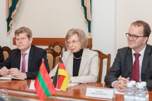 В режиме нон-стоп в законодательном органе республики проходят встречи в международном формате. Вчера его гостем была председатель группы по Молдове Парламентской ассамблеи ОБСЕ албанка Арта Даде, сегодня прибыла делегация фракции социал-демократической партии ландтага Баварии (ФРГ). Возглавил ее председатель фракции Маркус Риндершпахер. В составе немецкой делегации – члены фракции, а также Чрезвычайный и Полномочный Посол ФРГ в РМ Ульрике Мария Кноц. Приднестровскую сторону представляли Председатель Верховного Совета Александр Щерба, главы парламентских комитетов по развитию предпринимательства Виктор Гузун и экономике Александр Коршунов. И если немецкий посол – довольно частый гость в Тирасполе, то внушительная как в количественном, так и качественном отношении делегация баварских парламентариев посещает нашу республику с краткосрочным визитом впервые.