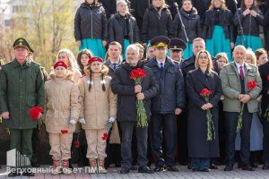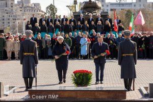 Утром 12 апреля состоялось открытие обновленного Мемориала Славы. Память советских воинов, избавивших город от фашистского гнета, почтило руководство республики. Живые цветы к Вечном огню и гранитным плитам с именами погибших возложили Президент ПМР Вадим Красносельский, Председатель Правительства ПМР Александр Розенберг, заместитель Председателя Верховного Совета ПМР, депутат по округу №25 «Западный» Галина Антюфеева, депутат Верховного Совета по округу №29 «Одесский» Игорь Буга, руководители министерств и ведомств, духовенство, общественники и неравнодушные жители столицы.