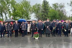 На торжественные и памятные мероприятия парламентарий пришел вместе с младшим сыном Виктором. Вместе с руководством города Днестровска и Молдавской ГРЭС они возложили корзину цветов к памятнику павшим солдатам и офицерам Красной Армии.