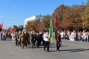 Защитники Приднестровья возглавили парад-шествие трудовых коллективов дубоссарских предприятий и организаций по центральной площади города. Они проследовали на Мемориал Славы, где возложили цветы к местам упокоения героев-защитников Приднестровья и почтили их память.