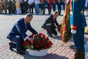 Праздничные мероприятия, приуроченные к 33-й годовщине со дня образования Приднестровья, сегодня проходят во всех городах и районах. Главные торжества с участием первых лиц государства прошли в столице. На Мемориале Славы глава государства возложил венок к Вечному огню, а вслед за ним цветы к могилам и плитам с именами защитников Приднестровья возложил и спикер парламента Александр Коршунов. Память погибших почтили минутой молчания.