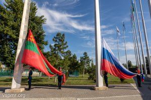 Сразу после церемонии возложения цветов на площади Суворова в Тирасполе были подняты государственные флаги Приднестровья и России. 32 года назад - 2 сентября 1991 года - на IV съезде депутатов всех уровней был утвержден государственный флаг нашей республики. Он повторяет цвета флага Молдавской ССР. Закон об использовании флага России в Приднестровье наравне с флагом ПМР был принят в апреле 2017 года. Согласно документу, российский флаг поднимается одновременно с приднестровским на зданиях Администрации Президента, Верховного Совета, Правительства и других ведомственных и административных зданий. Постоянно оба флага установлены в зале заседаний Верховного Совета, в Правительстве, в залах судебных заседаний и в местных органах власти. На торжественных мероприятиях российское знамя всегда поднимают в небо вместе с приднестровским флагом.