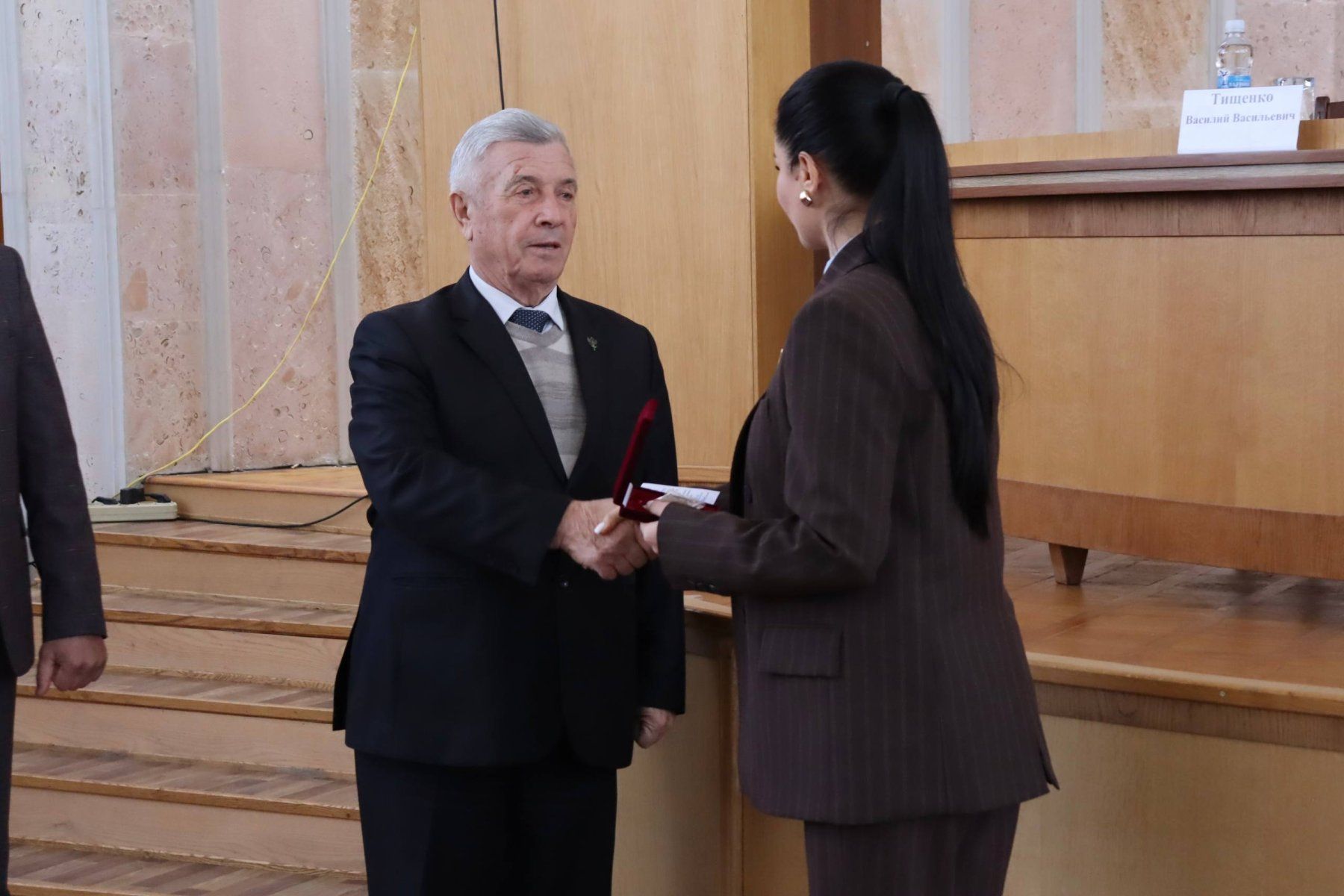 «В прошлом году Верховному Совету Приднестровской Молдавской Республики исполнилось 35 лет. В связи с этим по распоряжению Председателя Верховного Совета ряд граждан были удостоены юбилейным знаком. Среди них – наш выдающийся государственный деятель, который не только возглавляет район, но и был депутатом Верховного Совета II созыва. Примите слова благодарности за многолетний труд на благо наших граждан», – отметила Татьяна Залевская.
