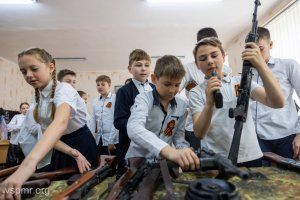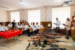 Накануне Дня Победы урок истории в столичной школе №11 оказался непривычным. За партами в одном кабинете сразу два класса – пятый и девятый, а у доски – два учителя. Ученикам включали отрывки из марша «Прощание славянки» и своеобразный гимн начала Великой Отечественной – песню «Священная война». Спустя 79 лет после Победы ветеранов в Приднестровье осталось совсем немного. И приходить в школы к детям, рассказывать о том, что они пережили, уже не позволяет здоровье и солидный, почти вековой возраст. Поэтому на этом классном часе вместо ветеранов говорит оружие. Активисты из общественной организации «Наследники Победы» принесли автоматы, пистолеты и гранаты, которые в свое время были найдены и обезврежены поисковиками на полях сражений Великой Отечественной.