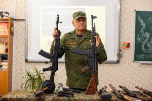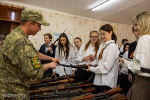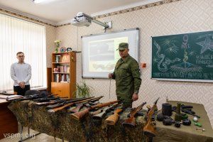 «На этих столах лежат экземпляры оружия, которое прошло Великую Отечественную войну, с которым воевали наши деды и прадеды, оружие, которое повидало кровь и слезы. Поэтому отнеситесь к этому не просто как к куску металла. Взяв в руки, просто на секунду представьте, через что оно прошло», - рассказывает помощник депутата Верховного Совета по избирательному округу №29 «Одесский», руководитель исполкома Республиканского общественного движения «Наследники Победы» Родион Романов.