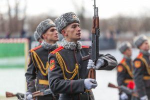 Ежегодно в любую погоду 23 февраля, в День защитника Отечества, на стадионе в Тирасполе представители силовых ведомств республики становятся участниками военно-спортивного праздника. Сегодняшнее мероприятие открылось поднятием приднестровского и российского флагов под звуки государственных гимнов. После этого торжественным маршем прошли Рота почетного караула, воспитанники Тираспольского Суворовского военного училища и Республиканского кадетского корпуса, подразделения Оперативной группы российских войск, а также министерства обороны, внутренних дел, госбезопасности и министерства юстиции, участвующих в празднике второй год. Защитников Отечества приветствовал Главнокомандующий Вооруженными силами ПМР Вадим Красносельский. Глава государства поздравил военнослужащих с 23 февраля.