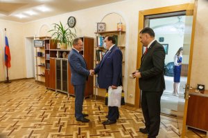 Председатель Верховного Совета Александр Коршунов провел встречу с первым вице-президентом Международной ассамблеи столиц и крупных городов СНГ, заместителем Генерального секретаря Ассамблеи народов Евразии Юрием Мищеряковым. Во встрече принял участие председатель Совета народных депутатов города Тирасполь Вадим Дони.