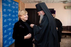 В рамках церемонии открытия фотовыставки Председатель Верховного Совета ПМР Александр Коршунов и вице-спикер Галина Антюфеева по благословению архиепископа Тираспольского и Дубоссарского Саввы были награждены епархиальными знаками священномученика Стефана Слободзейского.