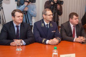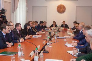 Председатель Верховного Совета Александр Щерба, его заместитель Галина Антюфеева – в числе участников встречи с Чрезвычайным и Полномочным Послом Российской Федерации в Молдове Фаритом Мухаметшиным в расширенном составе. За столом также представители российского посольства, глава ЦИК ПМР Елена Городецкая, вице-премьер Станислав Касап, члены Правительства, главы государственных администраций.
