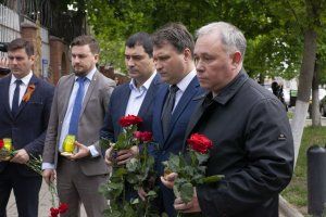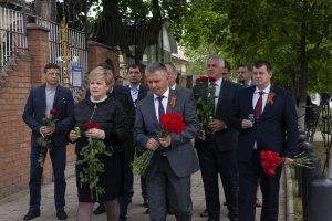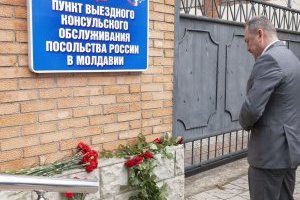 Руководство республики, парламентарии, представители министерств и ведомств возложили цветы к выездному пункту консульского обслуживания Посольства России в Тирасполе в связи с гибелью пассажиров в результате аварии самолета Superjet-100 авиакомпании «Аэрофлот».