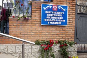 К консульскому пункту несут цветы тираспольчане. Кто-то прикрепил написанную от руки табличку «Мурманск, мы скорбим». Здесь же горят поминальные свечи…