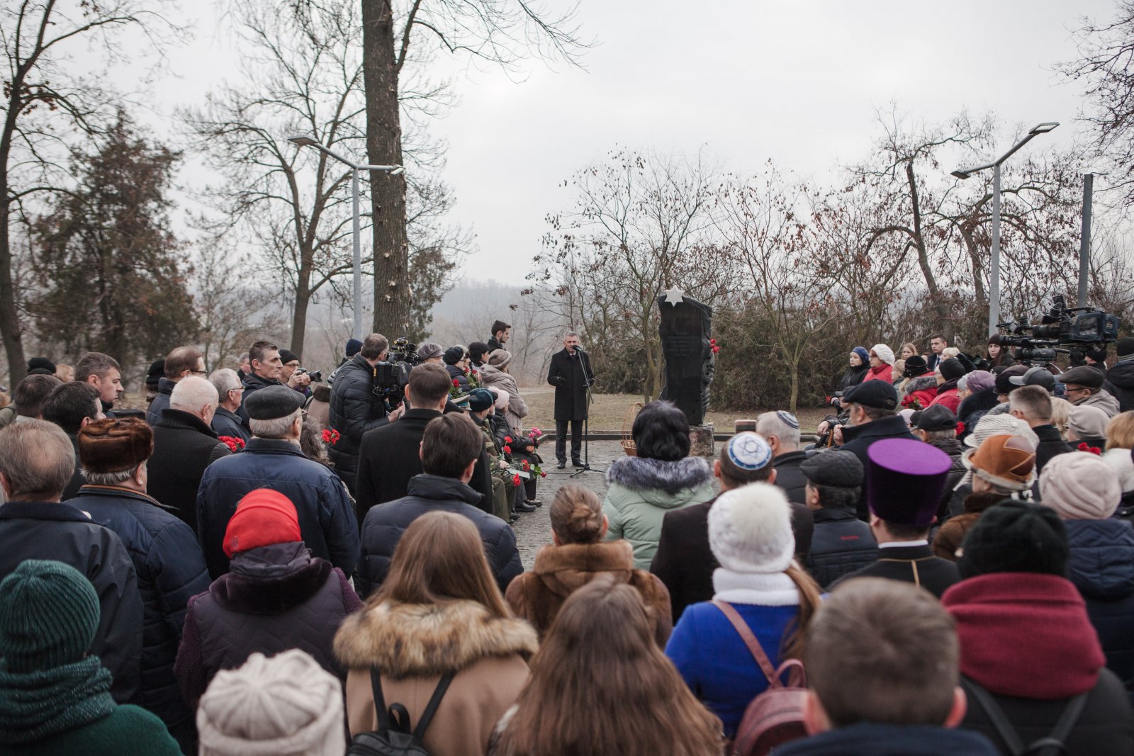 В траурном митинге, посвященном Международному Дню памяти жертв Холокоста и 75-й годовщине освобождения лагеря Освенцим, приняли участие глава государства Вадим Красносельский, первый президент ПМР Игорь Смирнов, заместитель Председателя Правительства Алексей Цуркан, депутат Верховного Совета Григорий Дьяченко, представители общественных организаций, жители и гости Тирасполя.
