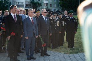 Мероприятие продолжилось у памятника Русской воинской славы, где состоялась заупокойная лития. Присутствующие возложили цветы к обелиску, установленному в 1912 году. Этот памятник, называемый горожанами «Орел», был возведен на средства солдат и офицеров императорской армии. На его гранитных плитах сохранилась надпись: «Доблестным предкам – потомки. От 55-го Подольского пехотного полка».