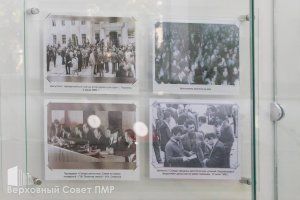 Одна из экспозиций посвящена становлению и развитию приднестровской государственности. Экспонаты, фотографии и документы для нее собирались со всех уголков республики, их предоставляли организации, предприятия, органы власти. Большая база эксклюзивных фотографий и материалов, посвященных в том числе предпосылкам создания нашего государства, была передана Верховным Советом ПМР.