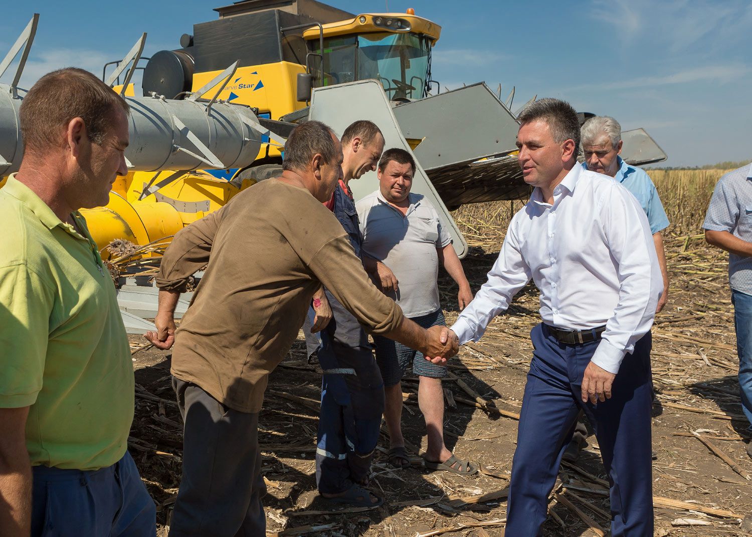 Вместе со спикером Вадимом Красносельским на поле, где идет уборка подсолнечника, они успели как раз к обеду. Представилась возможность поговорить с механизаторами. Первое, что отметили хлеборобы, – «главное, у нас есть работа и заработки». Кстати, зарплата у механизаторов выше средней по хозяйству. Вместе с тем дефицит и этих кадров наблюдается, с тех пор как была фактически разрушена система профтехобразования. Фермеры, землепользователи буквально переманивают их друг у друга.