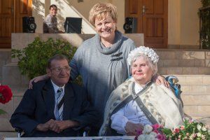 Двое жителей столичного дома-интерната для престарелых граждан и инвалидов Вячеслав Александрович Терещенко и Варвара Николаевна Кузьмина решили пожениться. Жениху 75 лет, невеста на два года старше. Познакомились молодожены в интернате. Вячеслав Александрович красиво ухаживал за Варварой Николаевной, приносил ей сладкие угощения, заботился. Говорит, полюбил ее за честность и принципиальность. После двух лет, проведенных рядом, он сделал предложение руки и сердца. Варвара Николаевна, конечно, согласилась. Свадьба была настоящей: марш Мендельсона, цветы, жених в костюме, невеста вся в белом. «Создавая семейный союз, вы вступаете на нелегкую, ответственную, но прекрасную дорогу семейной жизни. Хочется пожелать, чтобы те годы, которые вам предстоит прожить вместе, были для вас самыми радостными и счастливыми», – обратилась к молодым сотрудница столичного ЗАГСа.
