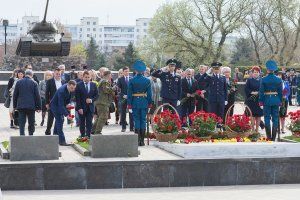 Тирасполь отмечает один из самых почитаемых жителями города праздник – День освобождения от немецко-румынских захватчиков. Торжественные мероприятия начались с митинга-реквиема, который прошел на столичном Мемориале Славы. Участие в памятном мероприятии приняли Заместитель Председателя Верховного Совета Галина Антюфеева, первый Президент Приднестровья Игорь Смирнов, парламентарии, члены правительства. Почтить память освободителей города на Днестре, всех погибших в сражениях за Тирасполь пришли и сотни горожан – ветераны Великой Отечественной, труженики тыла, общественники, студенты и школьники, члены трудовых коллективов предприятий, работники бюджетной сферы. Перед началом митинга вице-спикер Галина Антюфеева пообщалась с ветеранами, поздравила их с днем освобождения города.