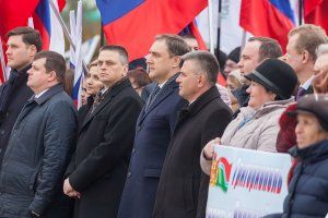 В рамках общегражданского форума «В будущее вместе с Россией» на главной площади столицы состоялась патриотическая акция, инициатором которой выступили представители общественности. Под флагами Приднестровья и Российской Федерации собрались сотни приднестровцев: представители общественных организаций, трудовых коллективов, молодежи, граждане России и соотечественники. Участники акции выразили поддержку России и призвали приднестровцев-россиян к активному участию в выборах президента РФ, которые пройдут 18 марта. Вместе с приднестровцами и представителями российской делегации, прибывшей для участия в общегражданском форуме, в акции приняли участие президент Вадим Красносельский, спикер парламента Александр Щерба, парламентарии.