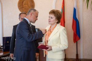 Сегодня в Верховном Совете поздравляли народную артистку Приднестровья Лидию Сизеневу. Указом Президента России ей было присвоено почетное звание «Заслуженный артист Российской Федерации». Нагрудный знак оперной певице вручил советник посольства Российской Федерации в РМ Александр Андреев.