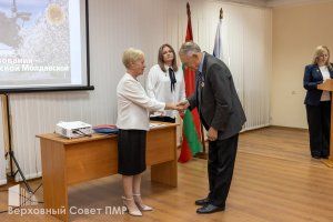 В коллективе Счетной палаты продолжают трудиться защитники Приднестровья. В торжественной обстановке их наградили юбилейной медалью «35 лет Приднестровской Молдавской Республике»: за заслуги в укреплении и развитии государства, за боевое участие, активную общественную деятельность и добросовестное выполнение служебных обязанностей. Сергей Владимирович Гайдукевич добровольцем пошел защищать республику весной 1992 года.