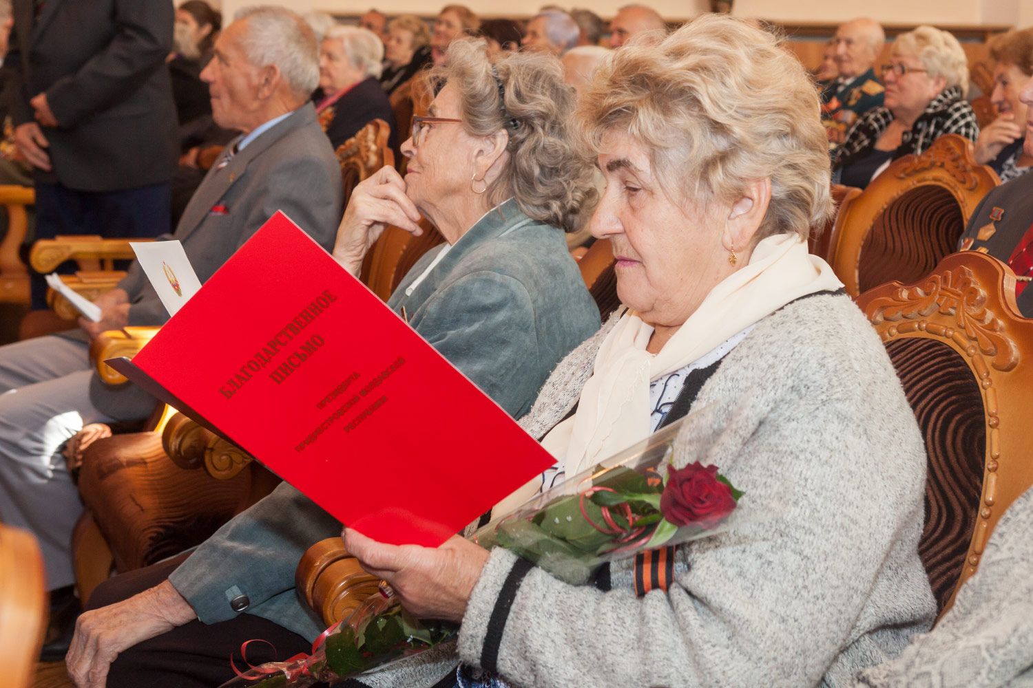Участники торжественного собрания почтили память умерших членов ветеранских организаций. Была направлена делегация для возложения цветов к Мемориалу Славы. «Вы – золотой фонд нашей республики. Сегодня руководство страны едино в желании обеспечить достойную жизнь наших ветеранов», – отметила вице-спикер парламента Галина Антюфеева. Она также процитировала строчки известного поэта: «Разве солнце убавит свечение? Разве тучи замедлят свой бег? Разве возраст имеет значение, если молод душой человек?»