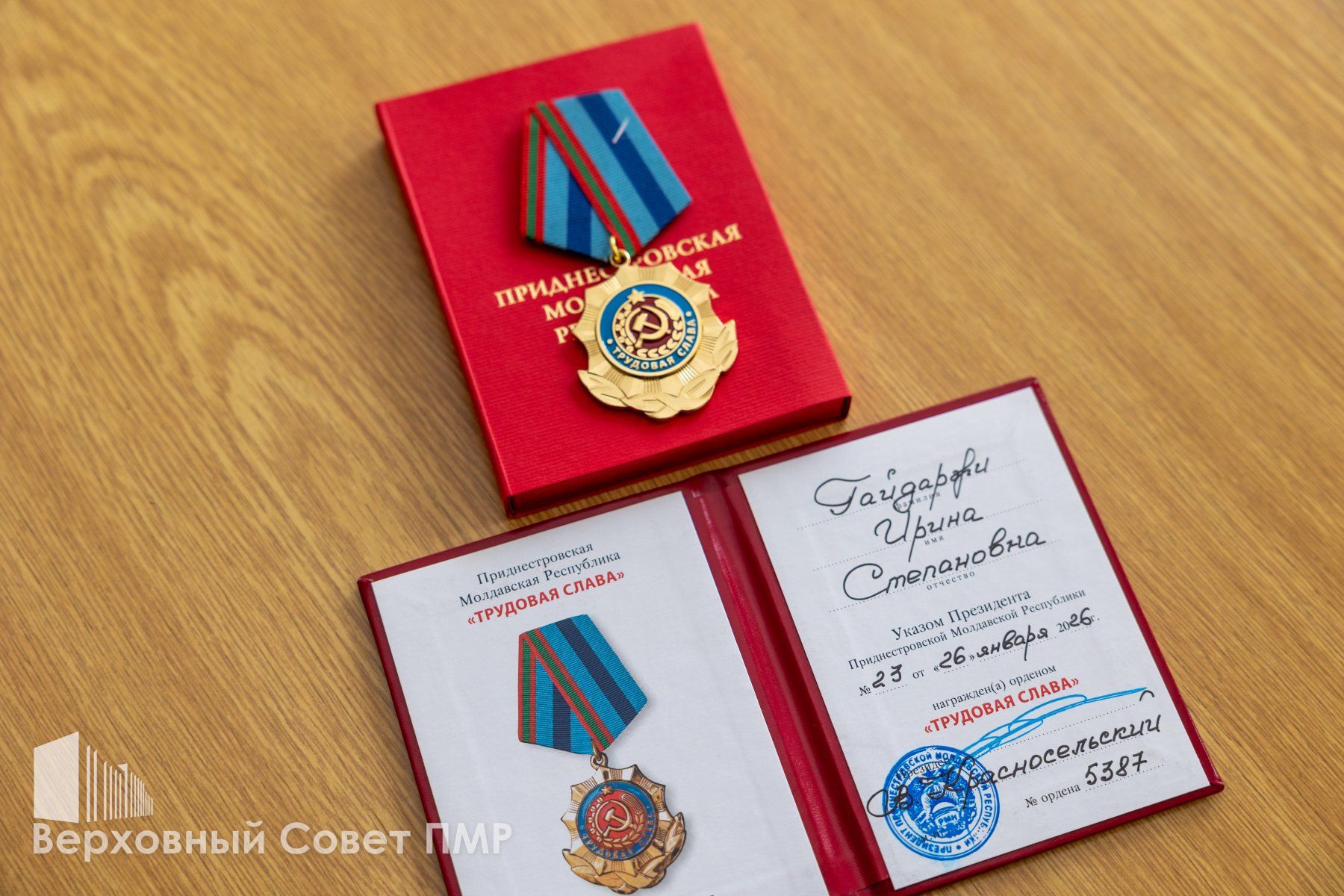 В торжественной обстановке депутат выполнила почетную миссию – вручила юбиляру государственную награду – орден «Трудовая Слава».