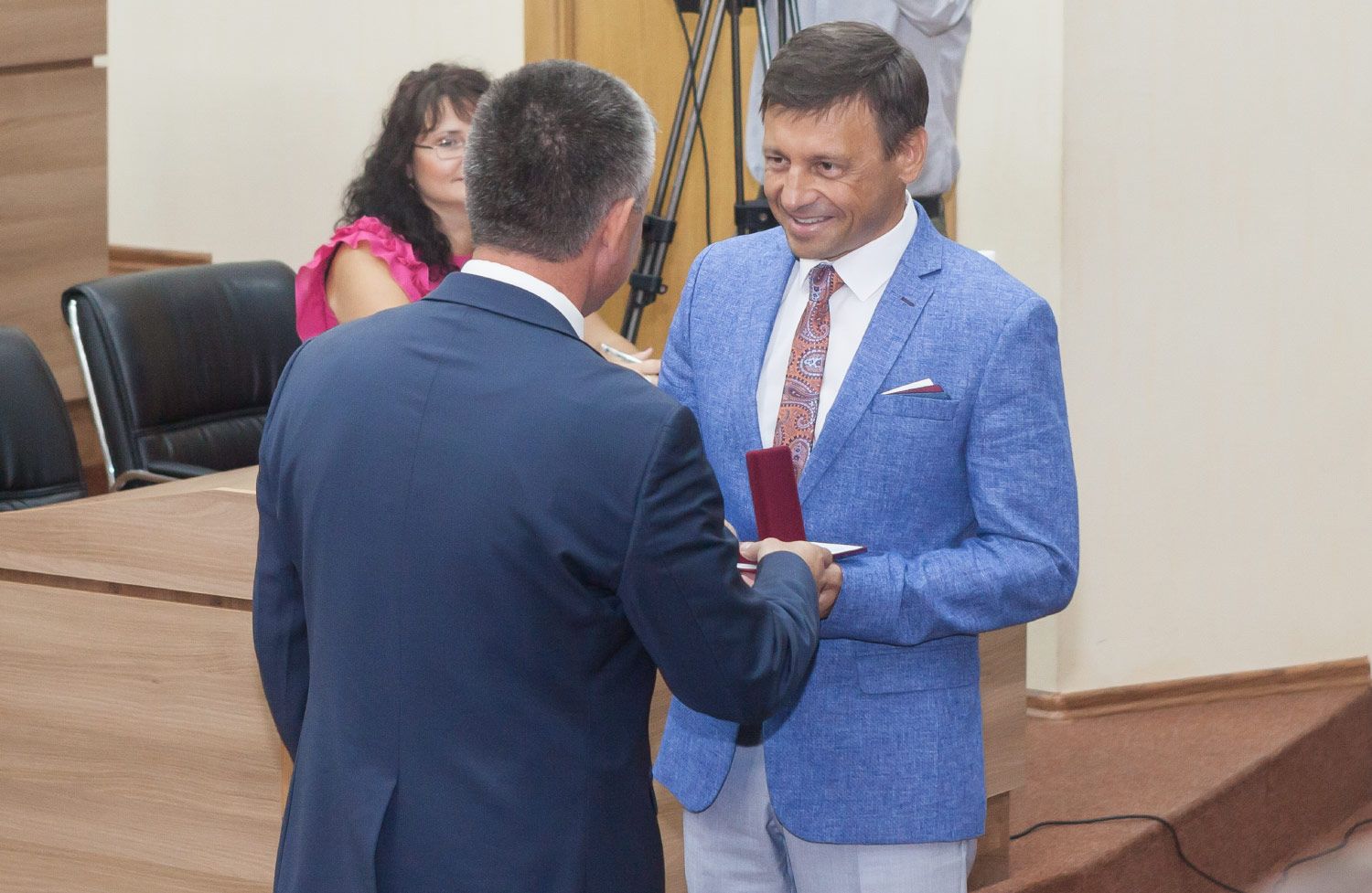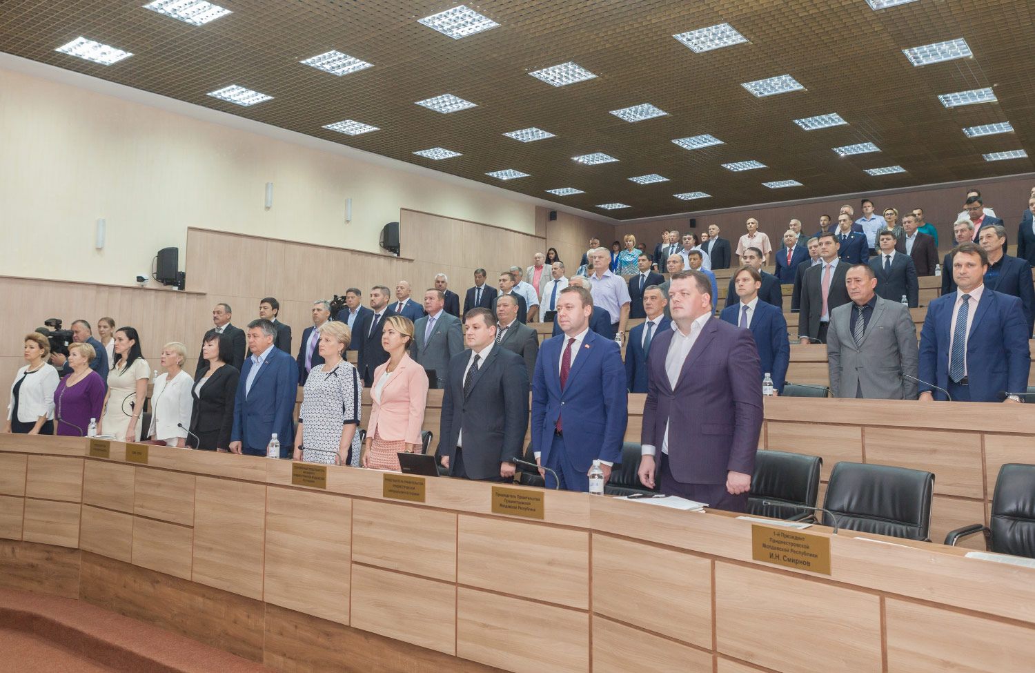 В зале пленарных заседаний звучат звуки государственного гимна. Они известили о начале нового парламентского сезона – очередной осенней сессии Верховного Совета. Началась она с торжественного момента: принявший участие в работе пленарного заседания Президент ПМР Вадим Красносельский вручил государственные награды. В числе награжденных – вице-спикер парламента Галина Антюфеева, она удостоена Ордена Почета, депутат Вадим Левицкий, награжденный орденом «Трудовая Слава».