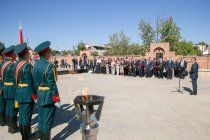 Участники церемониала почтили память убитых минутой молчания и возложили цветы к памятникам и к братским могилам.
