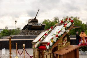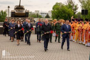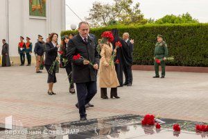 По завершении церемонии руководители республики отдали дань памяти воинам, павшим за Родину в разные исторические эпохи, возложив к гранитным плитам живые цветы.