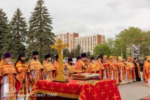 Сегодня, за несколько дней до Дня Победы, на Мемориале Славы Тирасполя прошли божественная литургия и заупокойная лития по усопшим в военное время, которые провел архиепископ Тираспольский и Дубоссарский Савва. Священнодействие прошло у часовни Святого Георгия Победоносца, отрытой на мемориале в 2011 году.