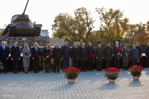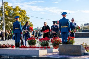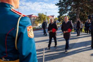 Сегодня жители и гости столицы отмечают День города Тирасполя. Мероприятия по случаю 230-летия со дня его основания традиционно начались на Мемориале Славы. Руководство республики и города, а также общественники и молодежь почтили память героев, погибших в разные годы, защищая родные земли. Председатель Верховного Совета Александр Коршунов и его заместитель Галина Антюфеева возложили цветы к Вечному огню, мемориальным плитам с именами солдат, погибших в Великую Отечественную войну и при защите Приднестровья в 1990-1992 годах, к скульптуре Скорбящей Матери. Павших героев присутствующие на Мемориале почтили минутой молчания.