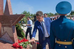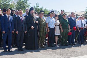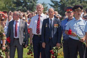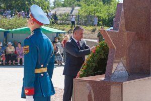 В память о погибших воинах на воздвигнутом Мемориале Славы возложили живые цветы.