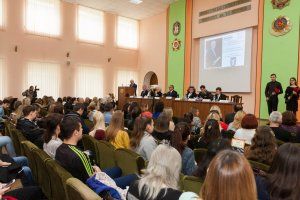 Работа конференции «Государство и право: вопросы теории и практики» продолжилась докладами и выступлениями. Гость из России, представитель Кубанского государственного университета Вадим Коняхин посвятил доклад международному уголовному праву, а также вручил ПГУ в дар ряд научных трудов и монографий.
