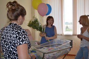 Сегодня из Центра матери и ребенка домой поехали семь мам со своими малышами. Это четыре девочки и три мальчика. Молодым мамам парламентарии Галина Антюфеева и Илона Тюряева вручили подарки, а еще воздушные шары и букеты ромашек – цветы, которые являются символом сегодняшнего праздника.