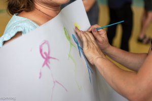 Родители вместе с детьми участвовали в конкурсах. Главным условием были не скорость и ловкость, а сплоченность семей. Команды, например, с закрытыми глазами рисовали красками, прыгали на большой скакалке, кормили друг друга с ложки.