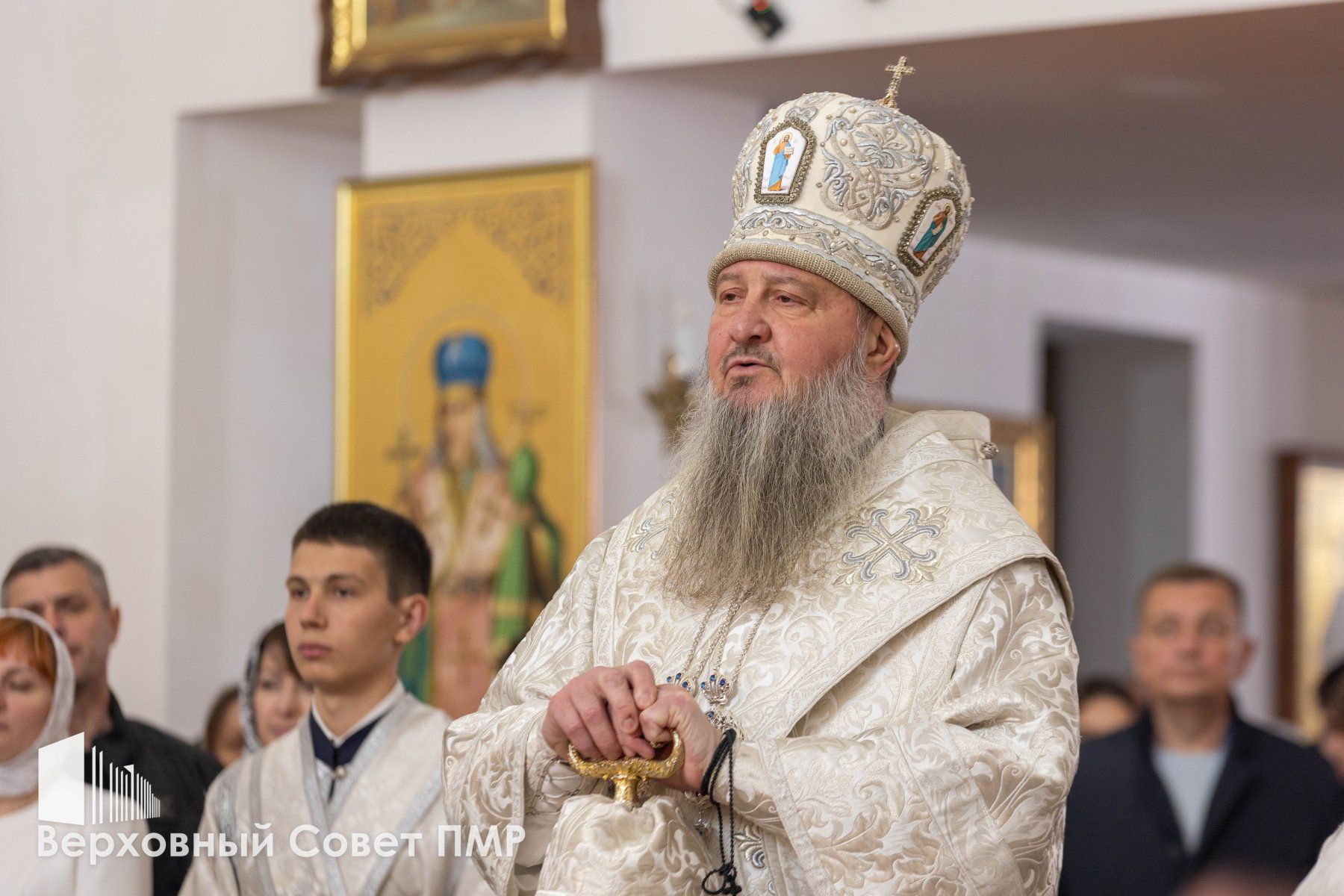 От имени Верховного Совета ПМР и от себя лично спикер парламента Татьяна Залевская поздравила со Светлым Христовым Воскресением архиепископа Савву и священнослужителей Тираспольско-Дубоссарской епархии. Спикер передала белые розы и приветственный адрес.