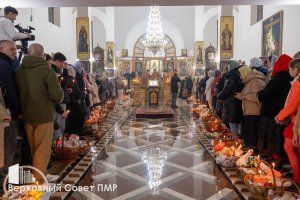 Праздник праздников и Торжество торжеств. Православные верующие празднуют Светлое Христово Воскресение. В ночь на 12 апреля пасхальные богослужения прошли по всей республике. В праздничной службе в столичном храме Воздвижения Креста Господня приняли участие Председатель Верховного Совета ПМР Татьяна Залевская, Председатель Правительства Александр Розенберг с супругой и депутат Верховного Совета по округу №30 «Кировский» Григорий Дьяченко с семьей.