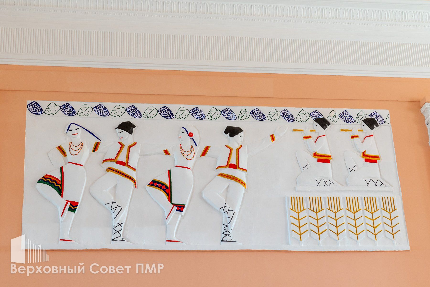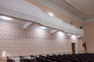 Сейчас завершены работы в фойе. Здесь выровняли стены, сохранили и восстановили декоративную лепнину, оформили гипсовое панно с национальными мотивами, обновили покрытие пола. Первые мероприятия в обновленном диско-зале (так фойе называют в местном Доме культуры) прошли уже в период новогодних праздников.