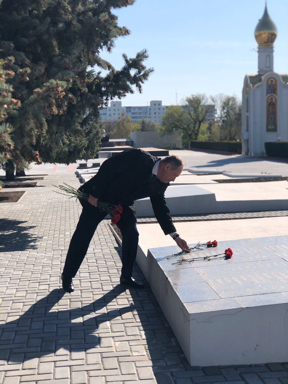 Председатель Верховного Совета Александр Коршунов возложил цветы к могилам воинов, которые самоотверженно сражались за мир, приближая День Победы.