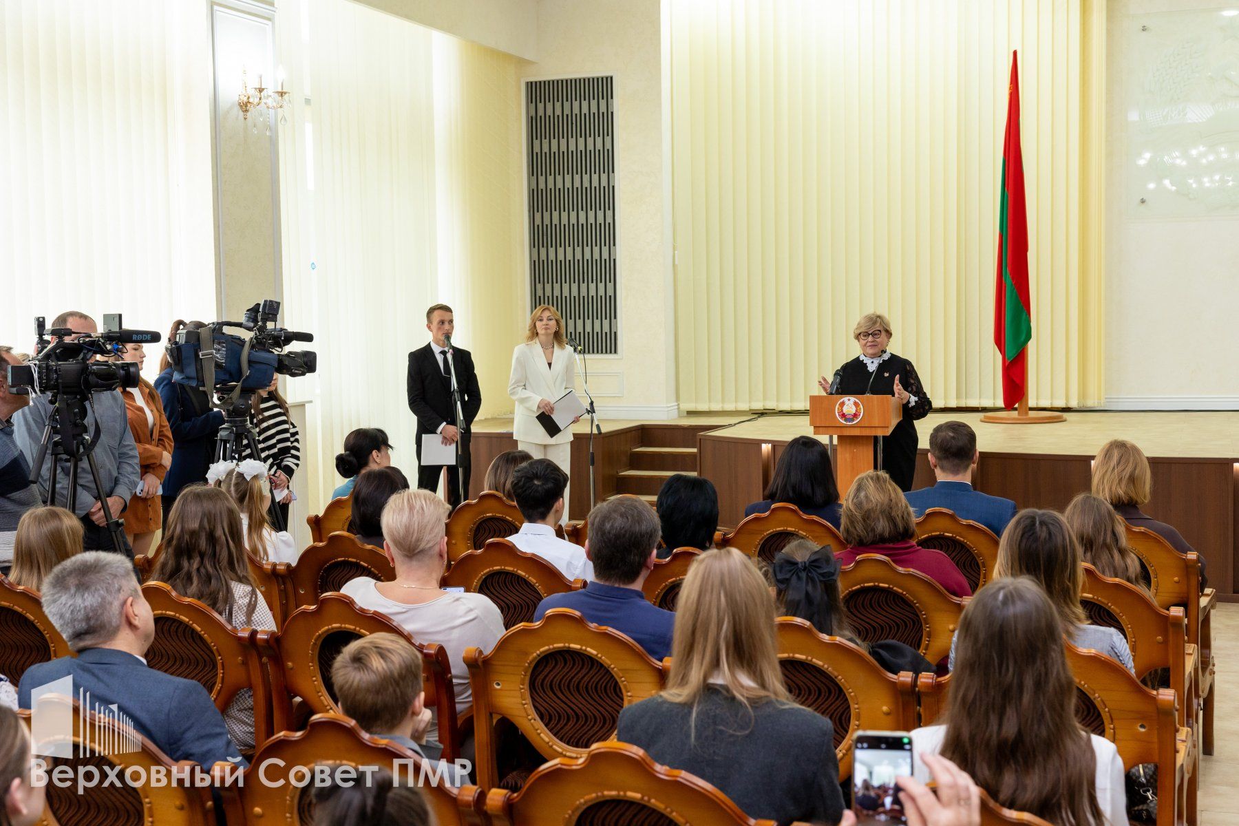 В этом году президентским стипендиатом стал 101 человек. Сертификаты вручили в торжественной обстановке в столичном Дворце Республики. Поздравить отличившихся пришли заместитель Председателя Верховного Совета ПМР Галина Антюфеева и представители Правительства.