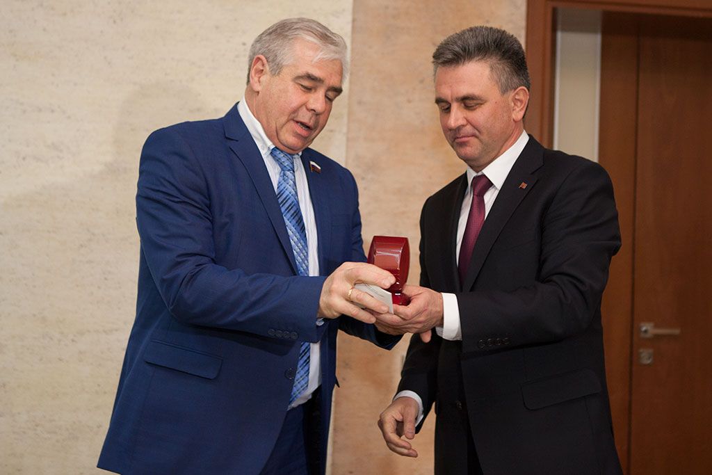 Находящиеся с визитом в Приднестровье депутаты нижней палаты российского парламента Сергей Кузин, Владимир Таскаев, Анатолий Сикорский, а также заместитель председателя правления фонда «Русский мир» Сергей Богданов приняли участие во встрече парламентариев и общественников, которая прошла под девизом «Межпарламентский диалог на пути Евразийской интеграции».